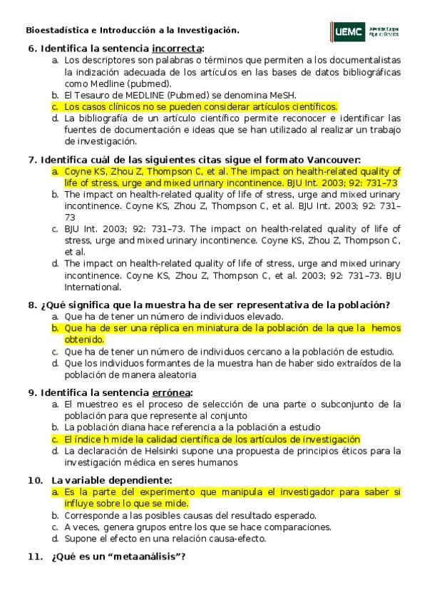 He publicado nuevos apuntes de 1º BIOESTADISTICA E INTRODUCCION A LA INVESTIGACION: CUESTIONARIO 2