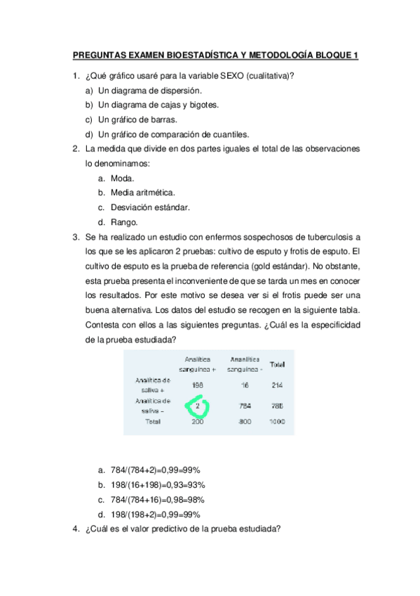 He publicado nuevos examenes de 1º Bioestadística y Metodología: PREGUNTAS-EXAMEN-BIOESTADISTICA-Y-METODOLOGIA-BLOQUE-1.pdf