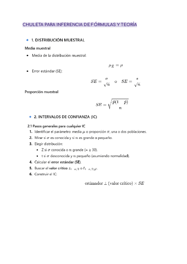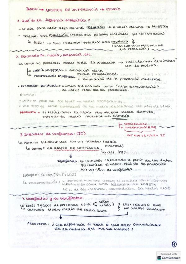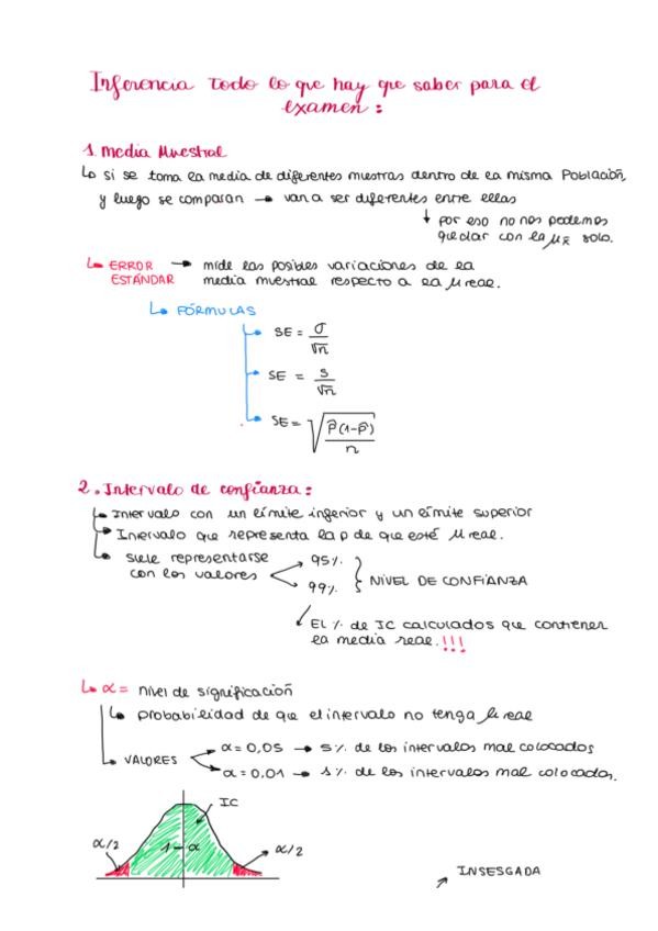 Apuntes claros para entender inferencia, con notas tomadas en clase y ejercicios del powerpoint resueltos.