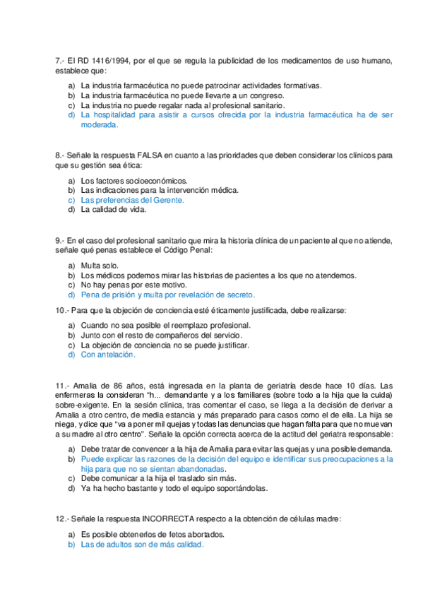 He publicado nuevos examenes de 4º Bioética clínica y medicina legal: examen-bioetica.pdf