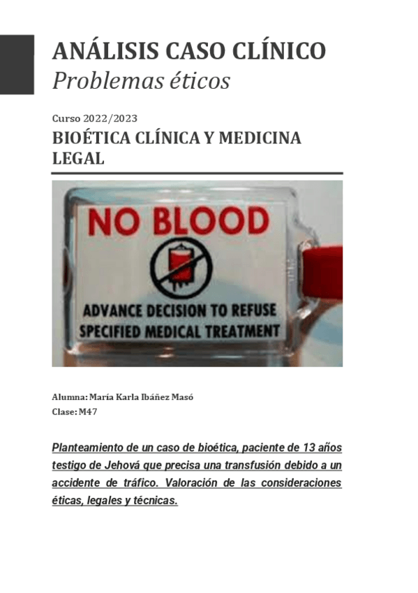 Trabajo para BIOÉTICA Tema libre (donación de sangre)