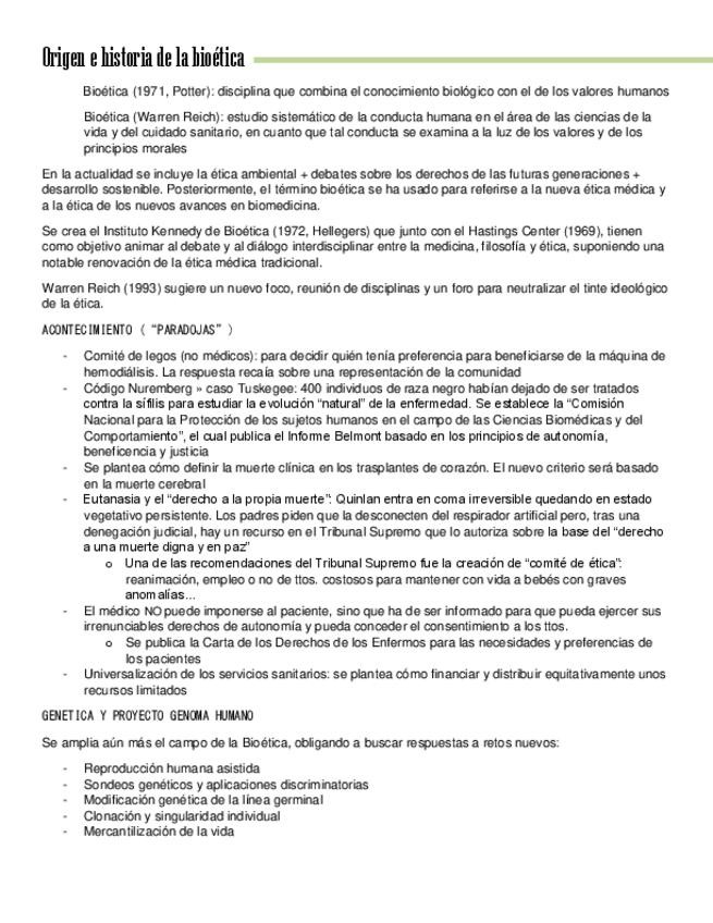 APUNTES COMPLETOS BIOÉTICA 1r PARCIAL