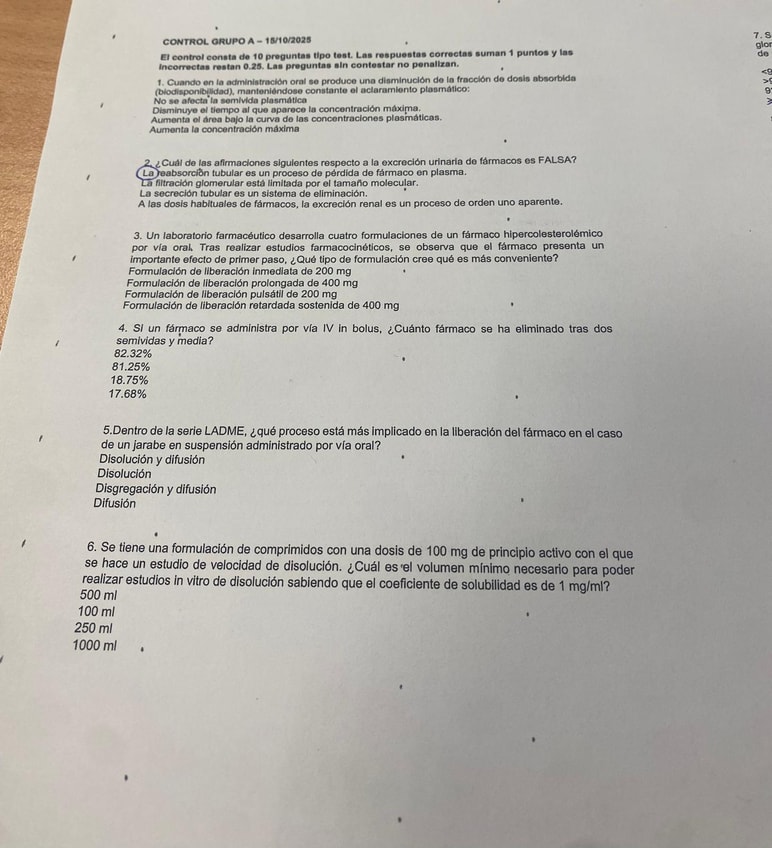 He publicado exámenes RESUELTOS de Biofarmacia y Farmacocinética. Tanto preguntas TEST como PROBLEMAS del modelo de examen.