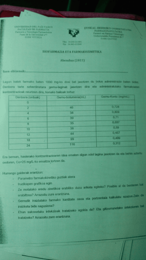 He publicado nuevos examenes de 4º Biofarmacia y Farmacocinética: exámenes biofarmacia