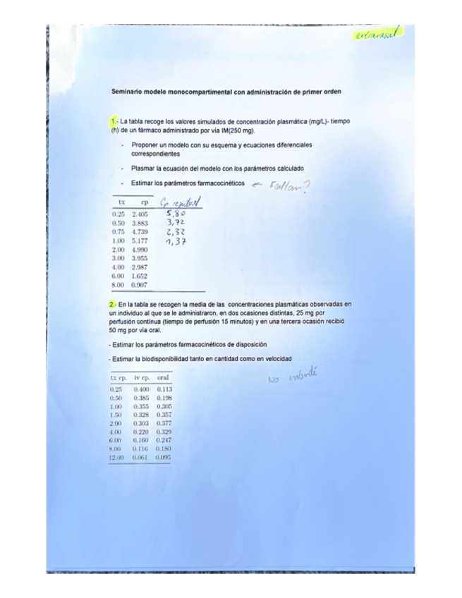 He publicado nuevos apuntes de 4º Biofarmacia y Farmacocinética: Ejercicio-bicompartimental.pdf