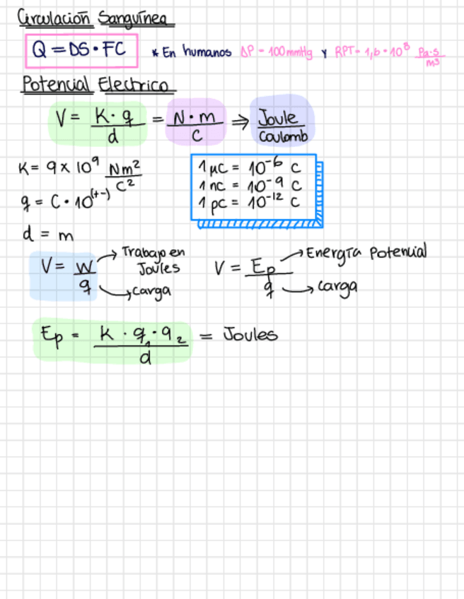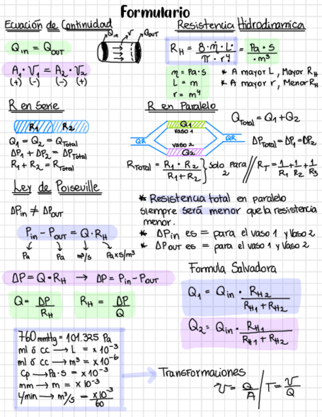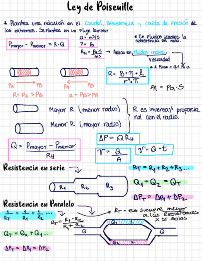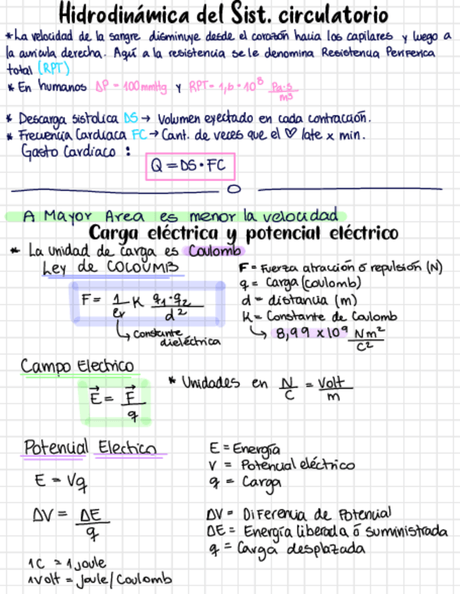 Ecuacion de continuidad - Ley poiseuille - resistencia hidrodinamica - circulacion sanguinea - potencial electrico