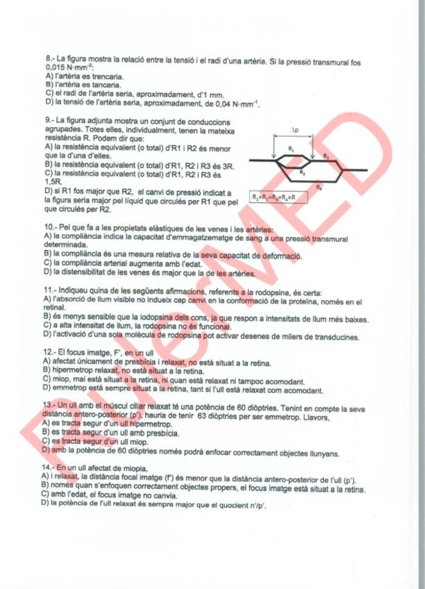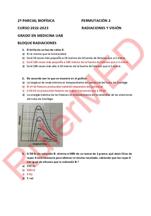 Examen biofísica segundo semestre medicina UAB sobre radiación y visión. Año 2025/26.
