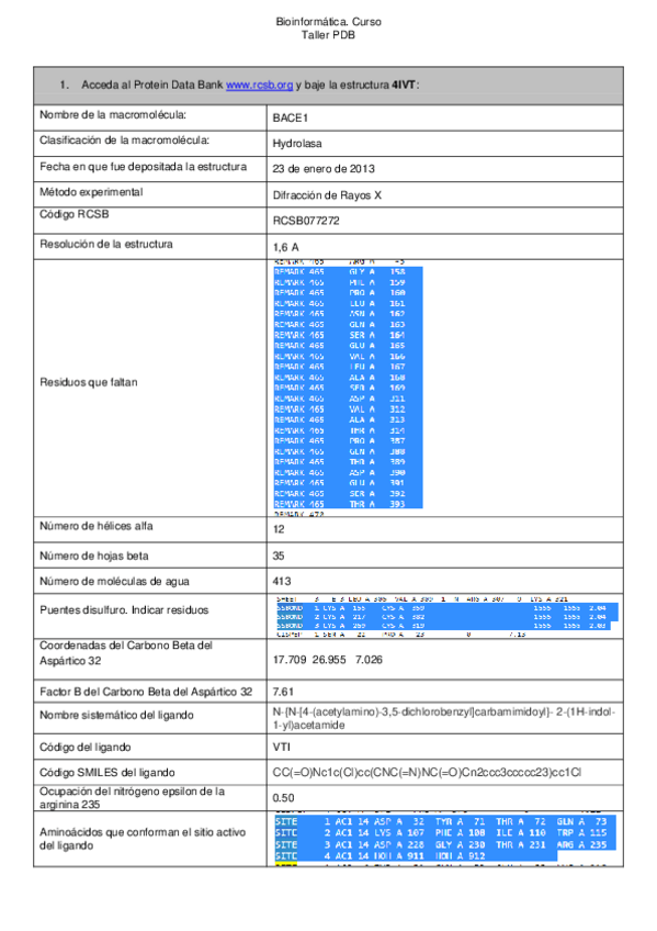 He publicado nuevos ejercicios de 3º Bioinformática: 6.PDB-workshop.pdf