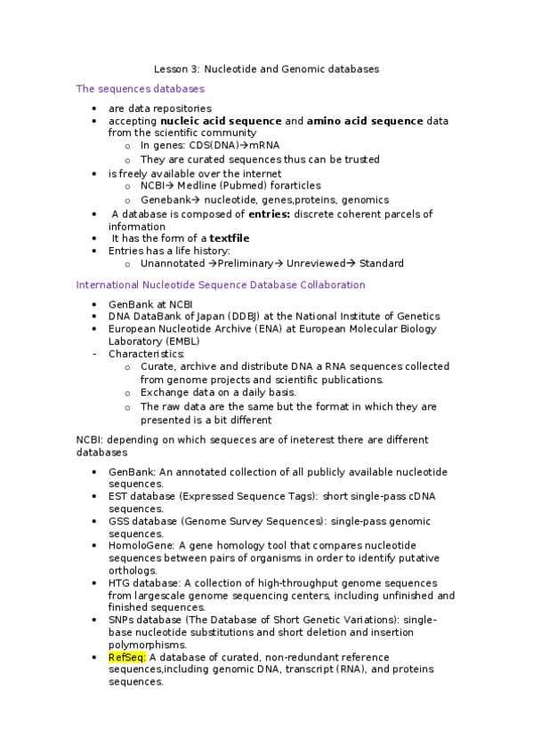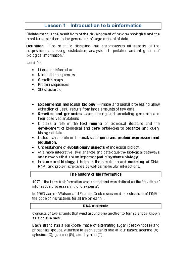 Bioinformatics Notes