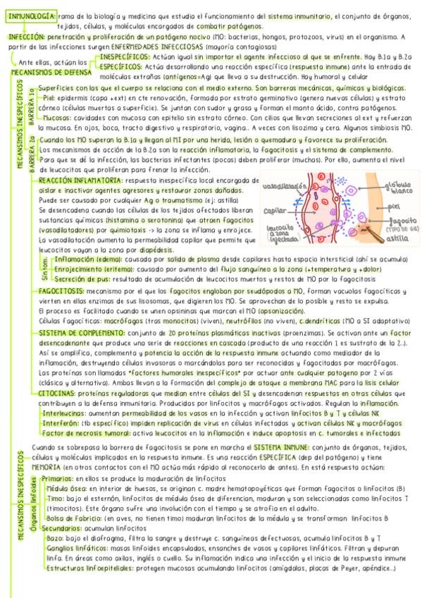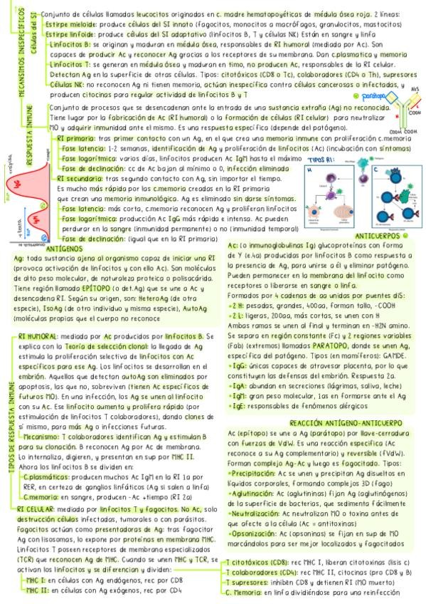 Adjunto apuntes de inmunología y sistema inmunitario de segundo de bachillerato. Están muy resumidos, y orientados al estudio de la PAU.
