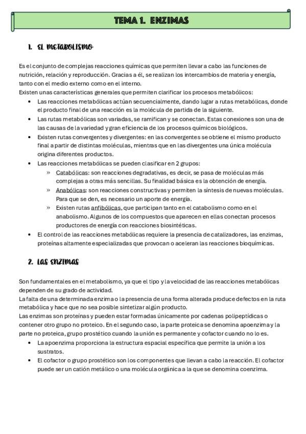 Apuntes Tema 9: Introducción Al Metabolismo: Las Enzimas para EBAU Biología CyL.
