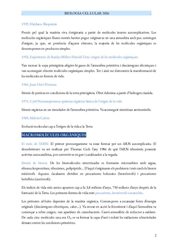Apunts del primer parcial de Biologia Cel·lular, elaborats a partir de les presentacions d’Andreu Blanquer. Inclouen tots els temes del parcial en format resum i esquemàtic. Estan pensats com a material de suport per a l’estudi i el repàs, no com a apunts