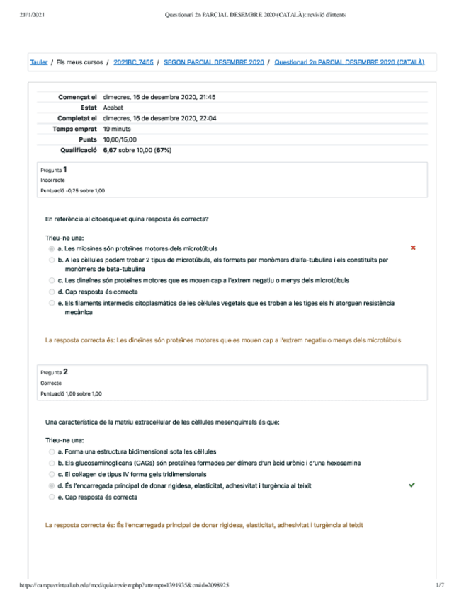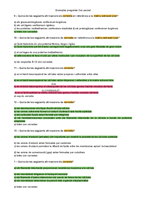 Exàmens parcials Biologia Cel·lular