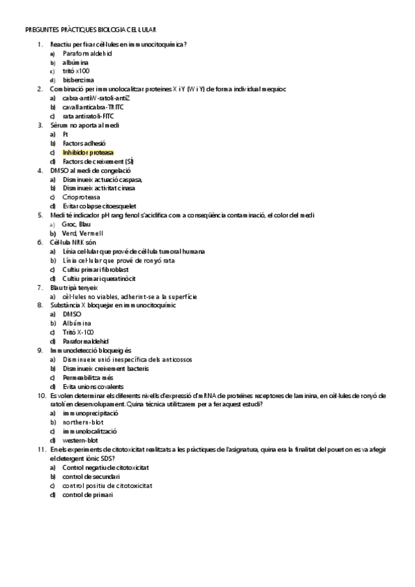 RESPOSTES CORRECTES Qüstionari seminari I - Tècniques Immunohístiques