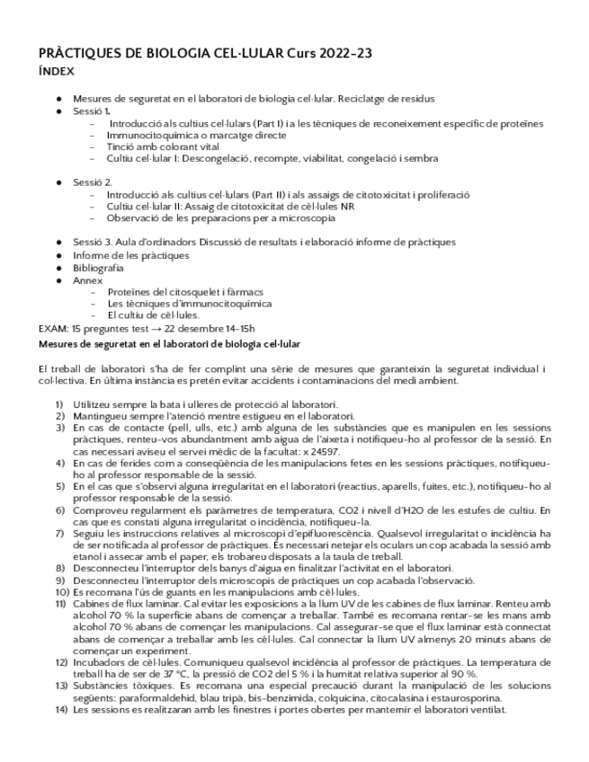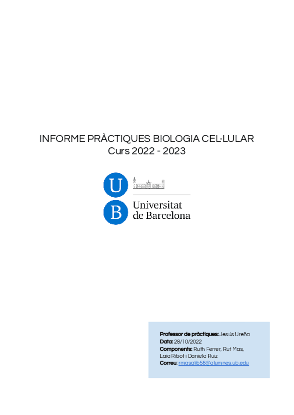 BIOLOGIA CEL·LULAR PRÀCTIQUES, TREBALL I EXAM (2022-2023)
