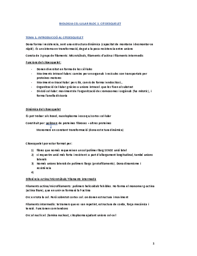 Teoria BLOC I - Citoesquelet