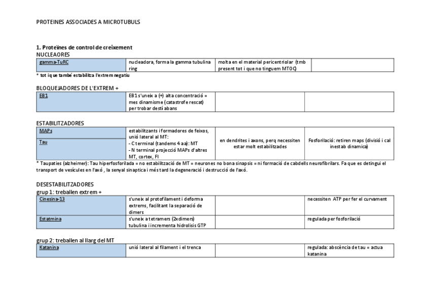 He publicado nuevos apuntes de 2º Biologia Cel·lular: proteïnes d'associació a l'actina i la tubulina en taules comparatives
