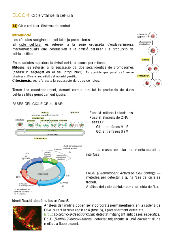 Apunts Biologia Cel·lular BLOC 4: El cicle vital de la cèl·lula