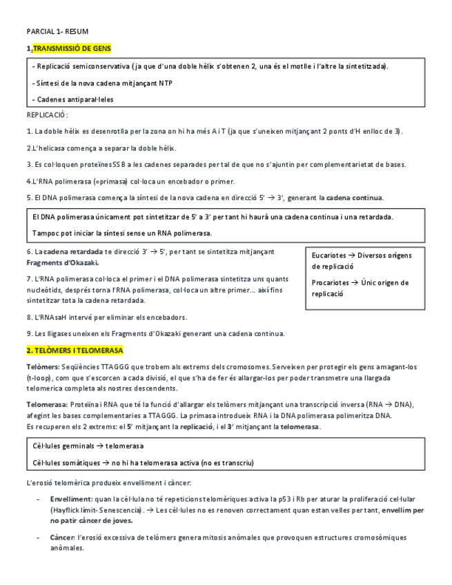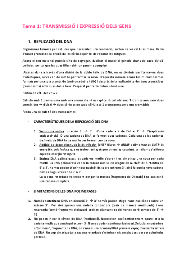 He publicado nuevos apuntes de 1º Biologia Cel·lular: Tema 1 - Transmissió i expressió de gens