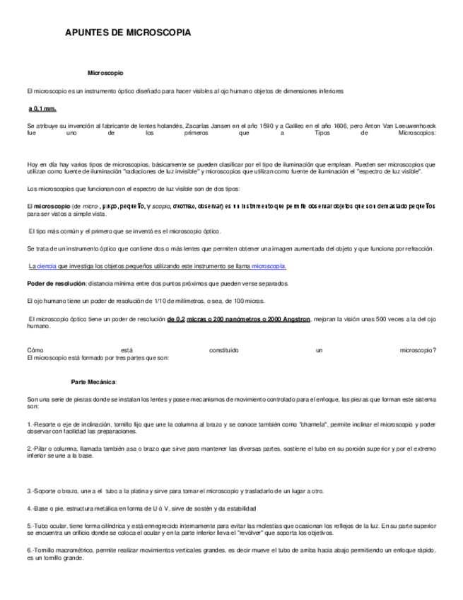 He publicado nuevos apuntes de 1º Biología celular e histología médica: Microscopio-resumen.pdf