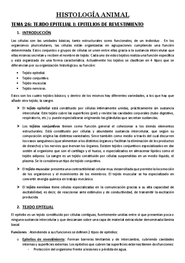 Lecciones Histología Animal 2° Parcial
