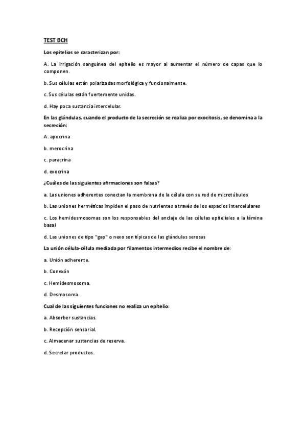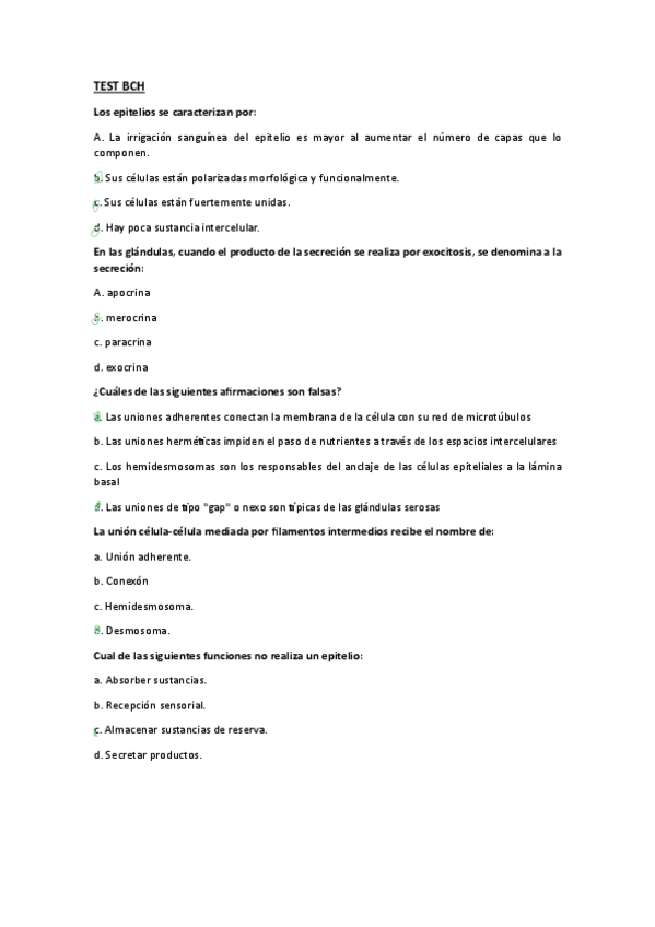 He publicado nuevos examenes de 2º Biología Celular e Histología Vegetal y Animal: Test-BCH-Segundo-Parcial-Respuestas.pdf