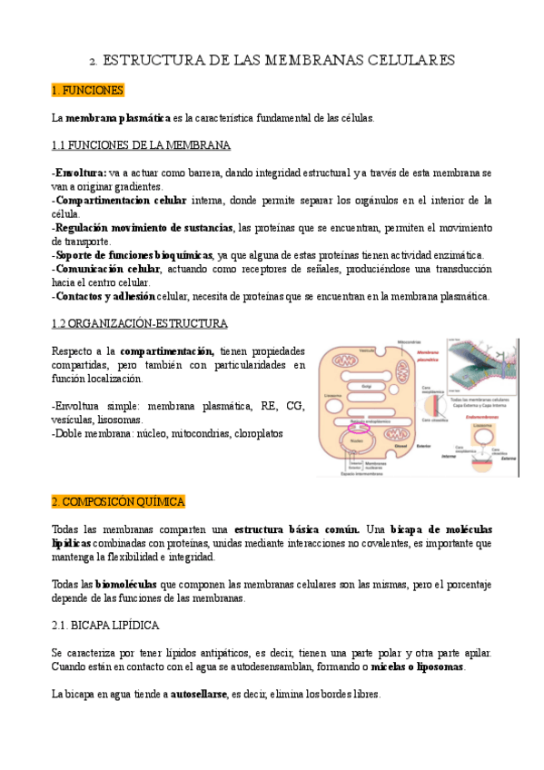 Tema 2: Estructura de las membranas celulares