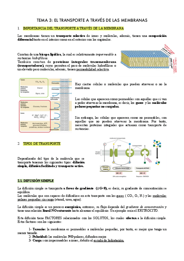 Tema 3: Transporte a través de la membrana celular
