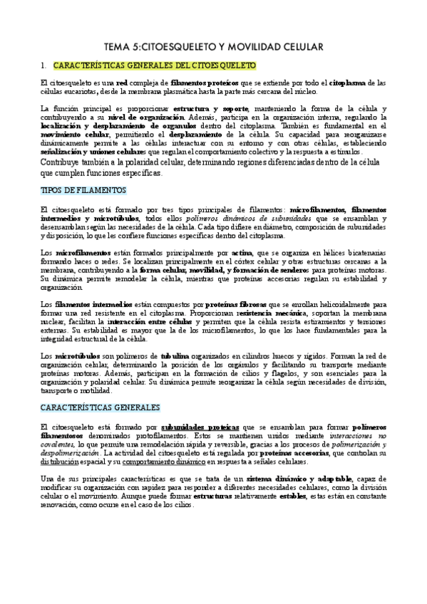 Tema 5: Citoesqueleto y motilidad celular