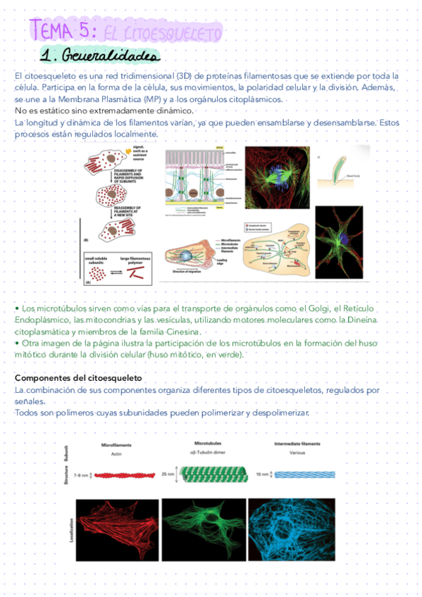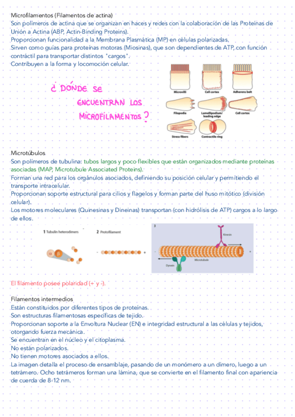 Tema 5: Tipos de filamentos del citoesqueleto, esquemas