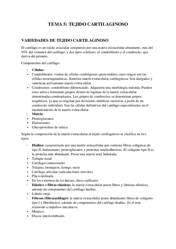 Apuntes de las clases de Juan Mayo del tejido cartilaginoso