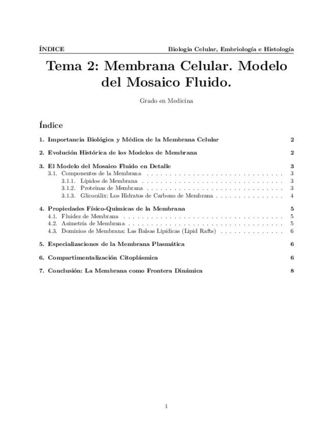 Tema 2. Membrana Celular. Modelos de membrana: Modelo del mosaico fluido. Estructura y funciones generales de las membranas celulares. Componentes: lípidos, proteínas e hidratos de carbono. Propiedades de las membranas celulares. Fluidez, asimetría y domi