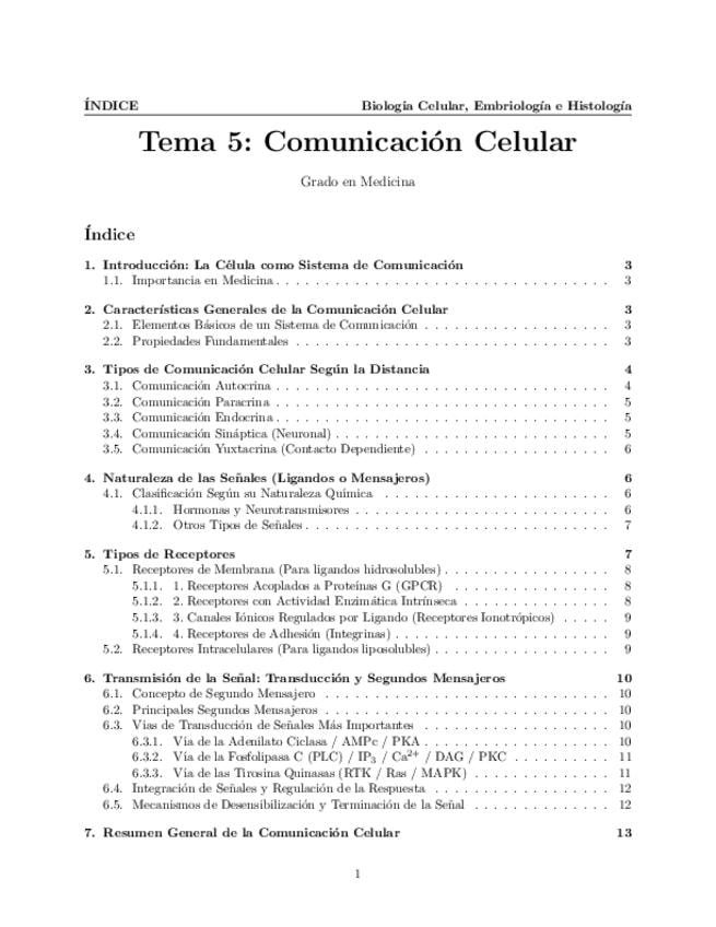 Tema 5. Comunicación Celular. Características generales. Tipos de comunicación. Naturaleza de las señales y tipos de receptores. Transmisión de la señal.