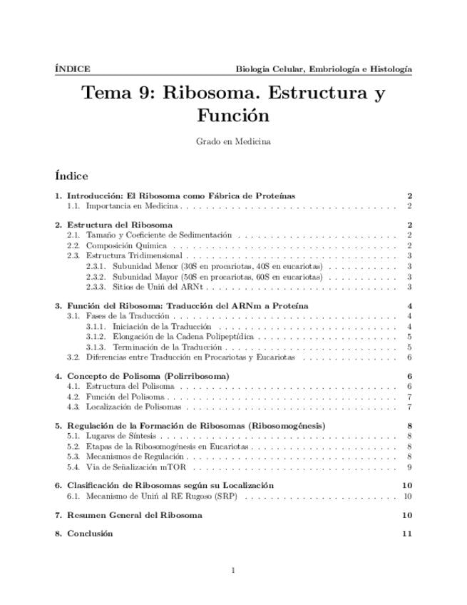 TEMA 9. Ribosoma. Estructura. Función en la síntesis proteica. Regulación de la formación de ribosomas. Concepto de polisoma.