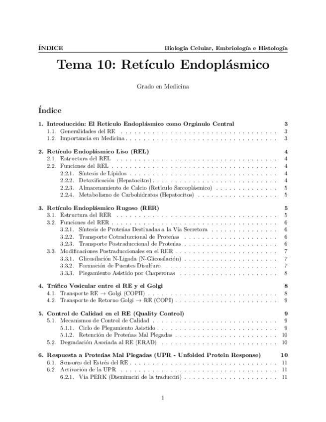Tema 10. Retículo Endoplásmico. Características generales. Retículo endoplásmico liso: Estructura y significado funcional. Retículo endoplásmico rugoso: transporte cotraduccional y postraduccional de proteínas. Modificaciones postraduccionales. Tráfico ve