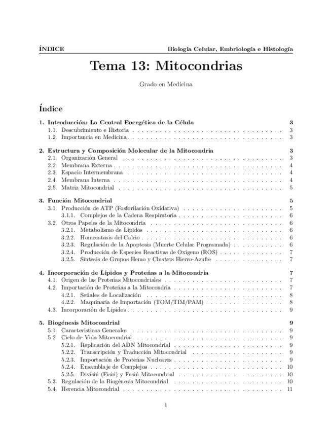 Tema 13. Mitocondrias. Estructura y composición molecular. Función mitocondrial. Incorporación de lípidos y proteínas a la mitocondria. Biogénesis mitocondrial.