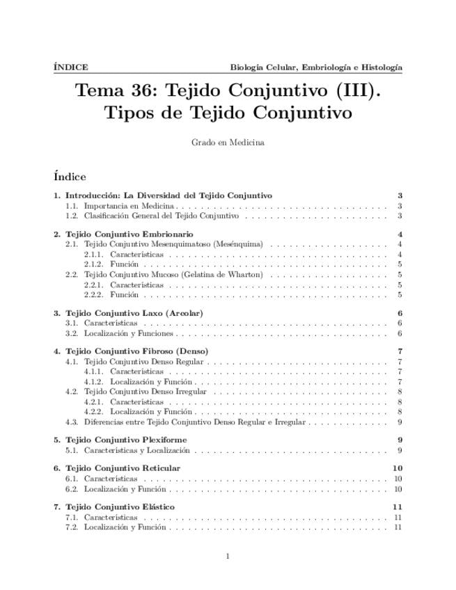 Tema 36. Tejido Conjuntivo (III). Tipos de tejido conjuntivo: mesenquimatoso, mucoso, laxo, fibroso, plexiforme, reticular, elástico.