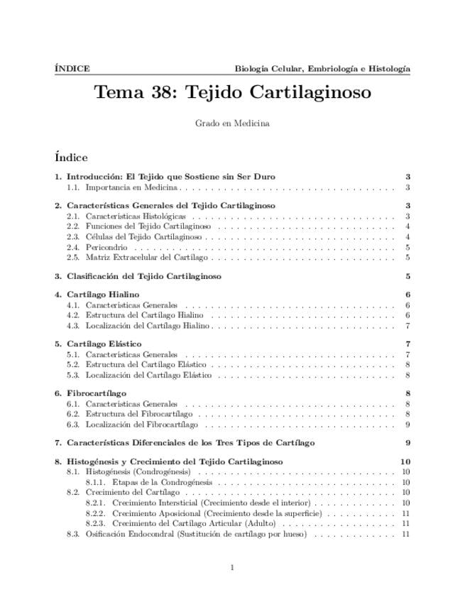 Tema 38. Tejido Cartilaginoso. Características generales. Cartílago hialino. Cartílago elástico. Fibrocartilago. Estructura. Características diferenciales. Histogénesis y crecimiento.