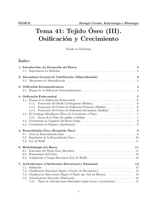 Tema 41. El Tejido Óseo (III). Osificación. Mecanismo general de calcificación. Osificación intramembranosa. Osificación endocondral: centros de osificación. Crecimiento en longitud del hueso largo: cartílago metafisario. Crecimiento en espesor del hueso.