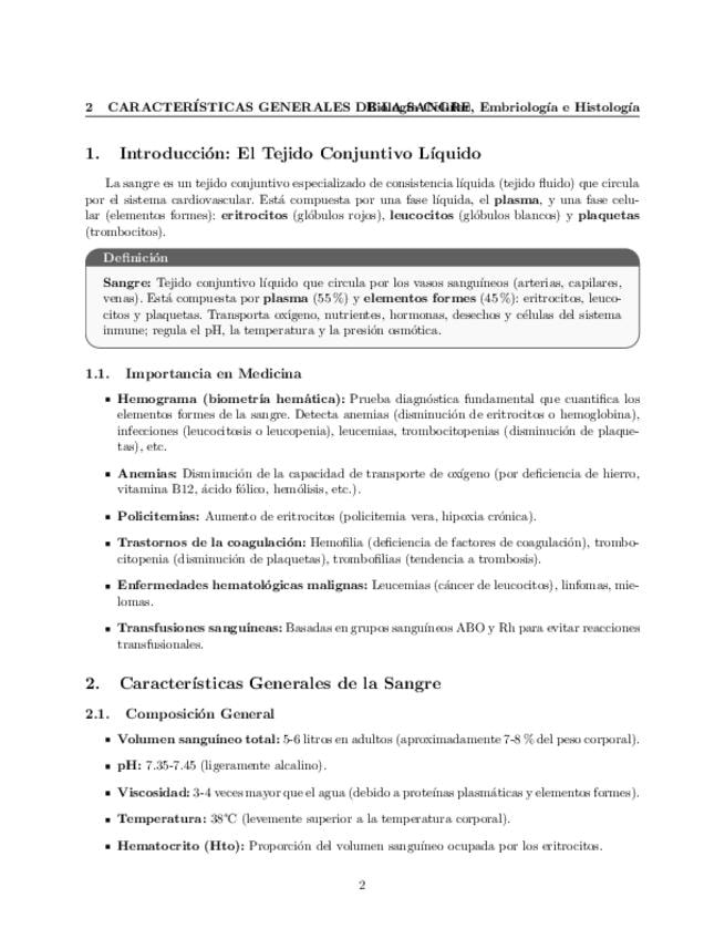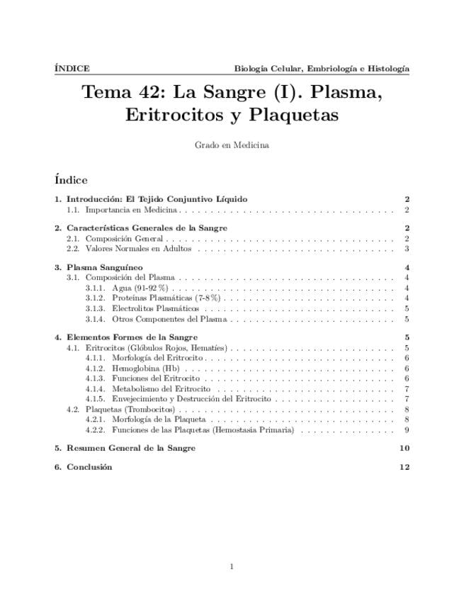 Tema 42. La Sangre (I). Características generales. Plasma. Elementos formes de la sangre. Eritrocitos. Plaquetas. Estructura y función.