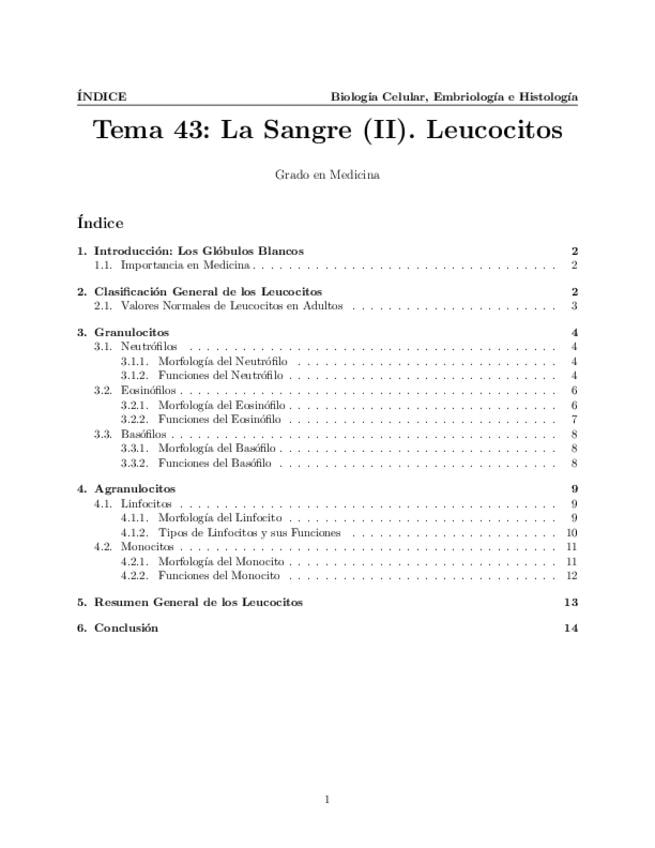 Tema 43. La Sangre (II). Leucocitos: Neutrófilos. Eosinófilos. Basófilos. Linfocitos. Monocitos. Características celulares y función.