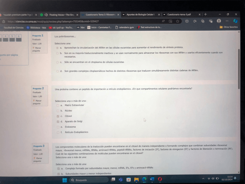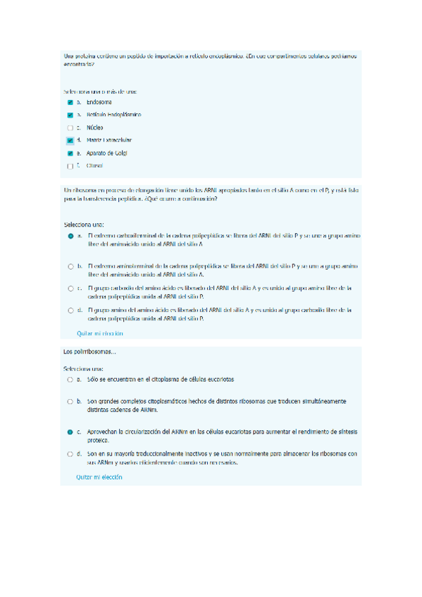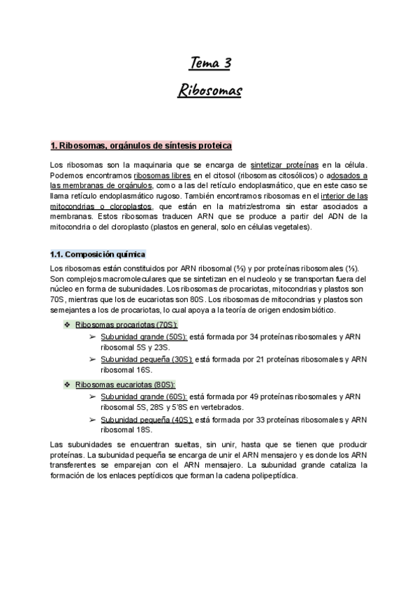 Cuestionario Tema 3: Ribosomas