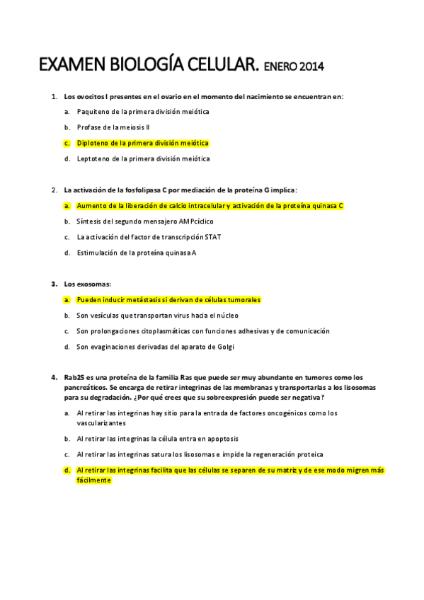 Exámenes biología celular y citología