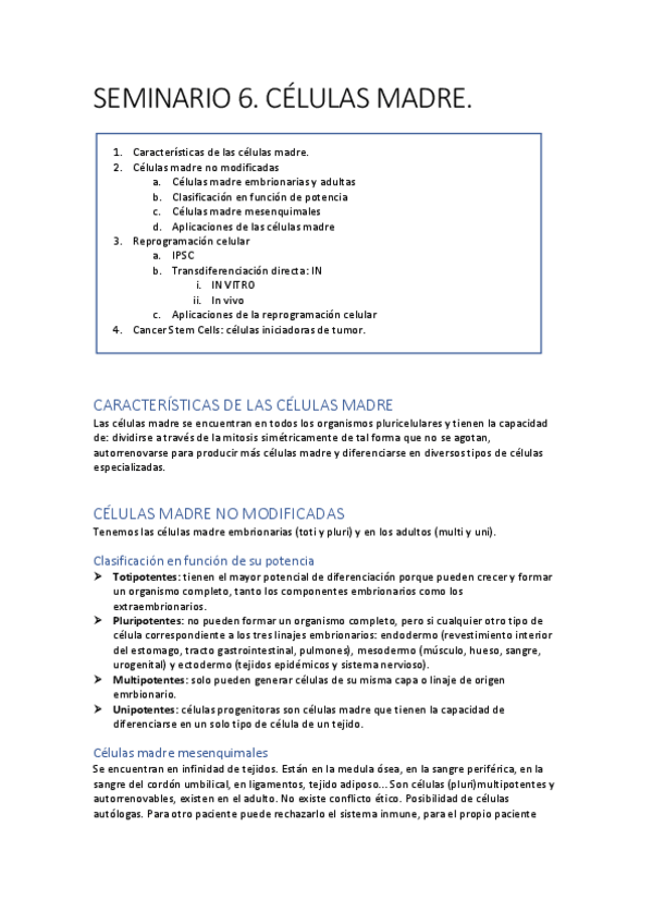 He publicado nuevos apuntes de 1º Biología Celular y Genética Básica: SEMINARIO-CELULAS-MADRE.pdf