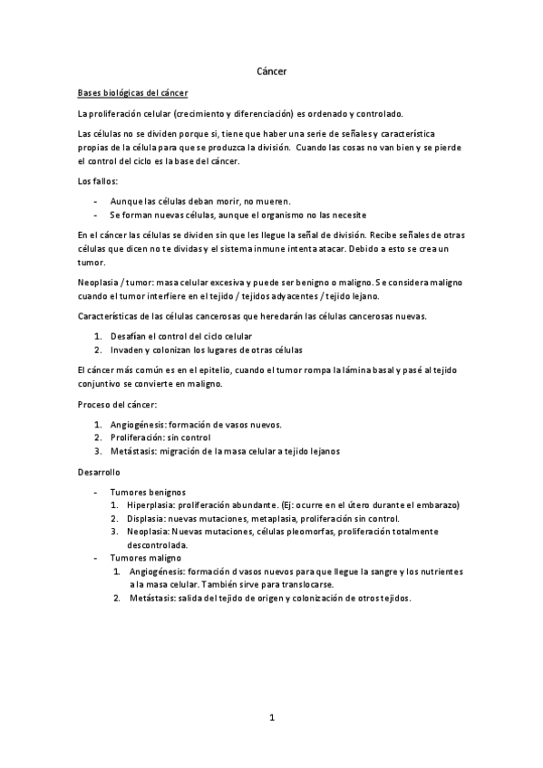 He publicado nuevos apuntes de 1º Biología Celular y Tisular: CANCER.pdf
