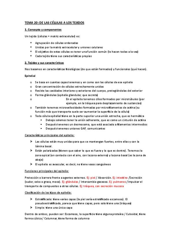 TEMARIO COMPLETO BIOLOGÍA TISULAR ESQUEMATIZADO. Todo lo que entra para examen.