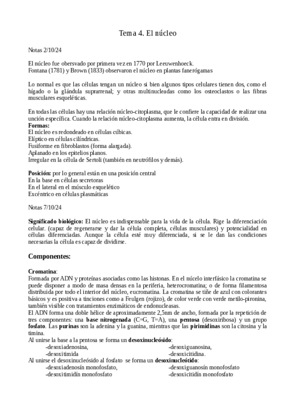 He publicado nuevos apuntes de 1º Biología Celular: Tema4Elnucleo.pdf