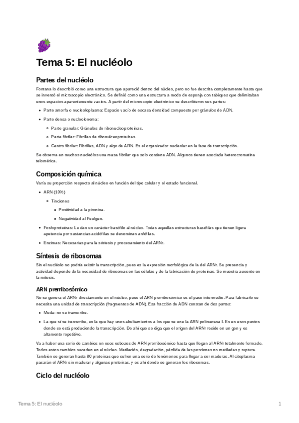 He publicado nuevos apuntes de 1º Biología Celular: Tema5Elnucleolo.pdf