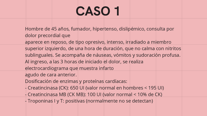 Hombre de 45 años, fumador, hipertenso, dislipémico, consulta por dolor precordial que aparece en reposo, de tipo opresi