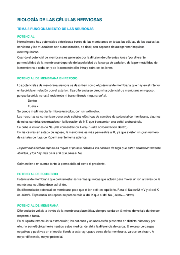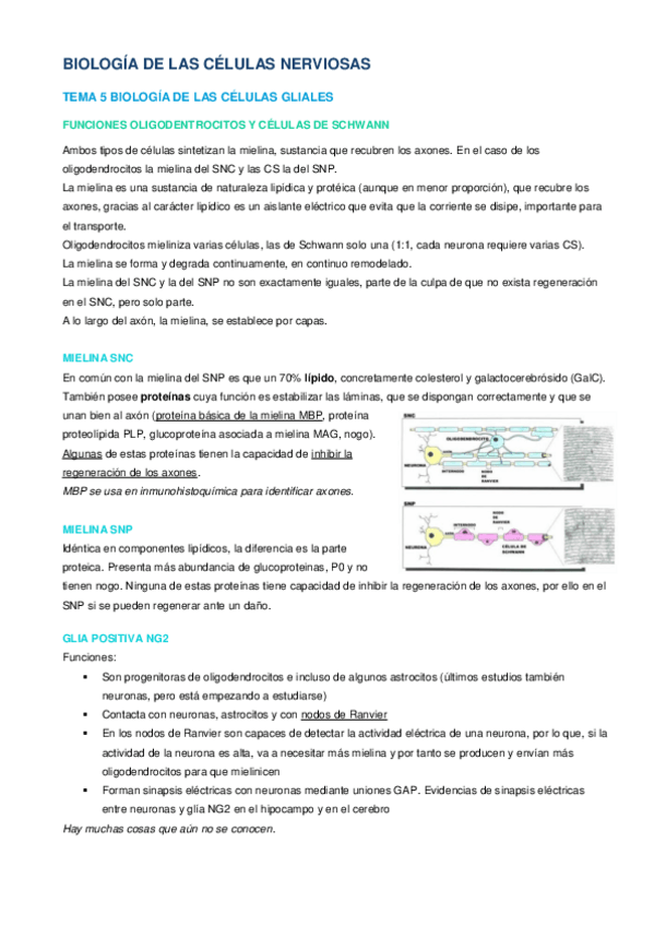 Temario completo de biología de las células nerviosas, con imágenes de los PDF de las profesoras